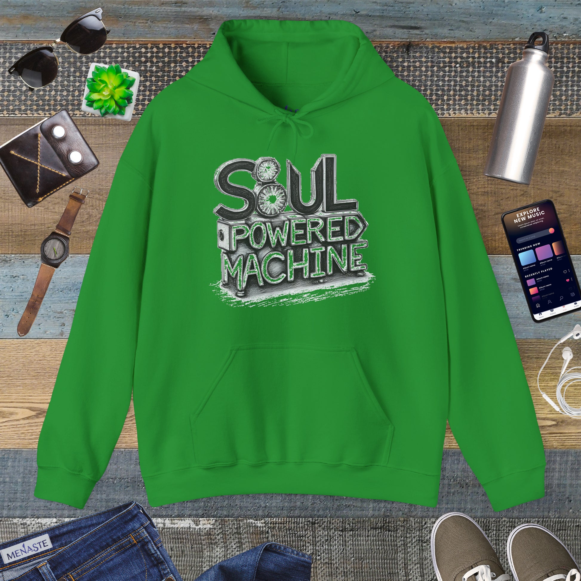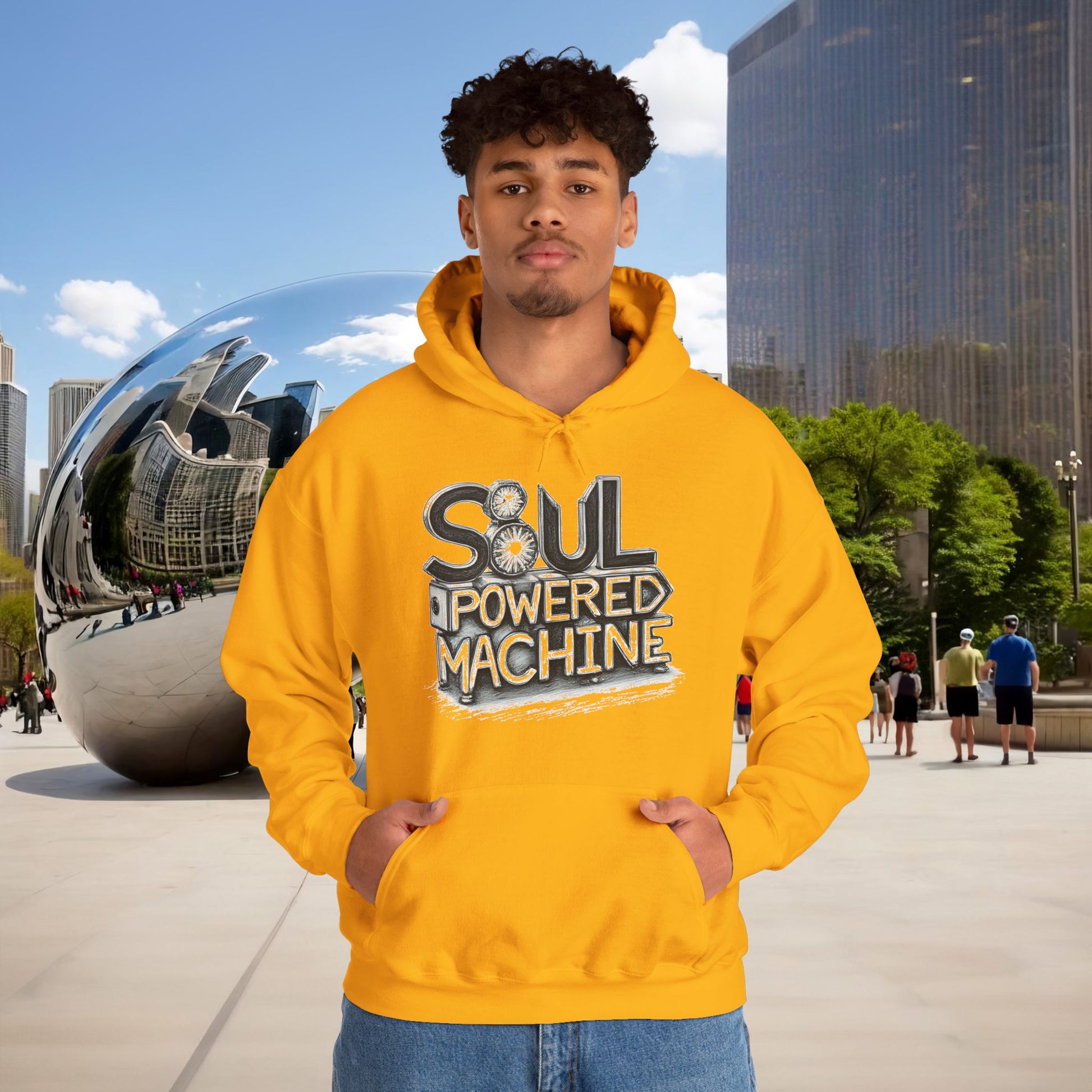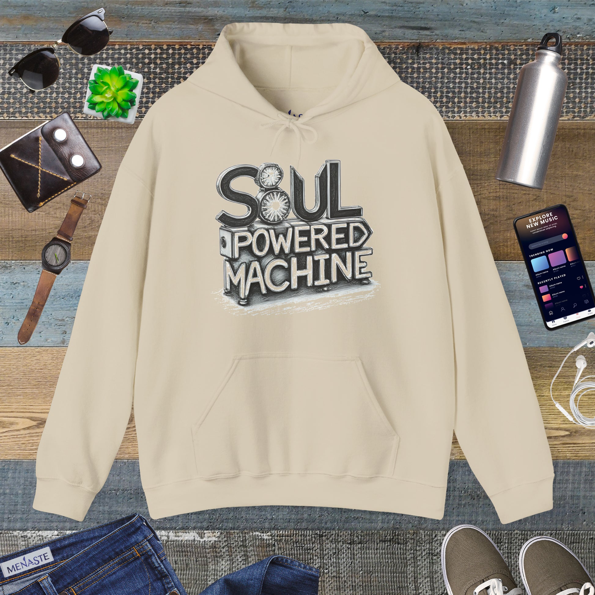 - Bold “SOUL POWERED MACHINE” artwork — a mantra in motion