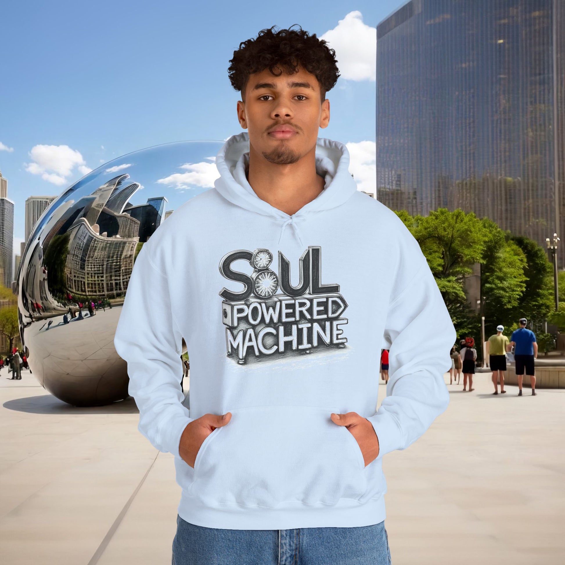 This piece is a fusion of raw masculine energy and spiritual consciousness. The hand-drawn “SOUL POWERED MACHINE” design reminds you that you are both the mechanism and the miracle — a being of flesh, mind, and divine fire. Whether you’re reflecting, training, or creating, this hoodie keeps your energy aligned and your presence undeniable. 🔥🕊️