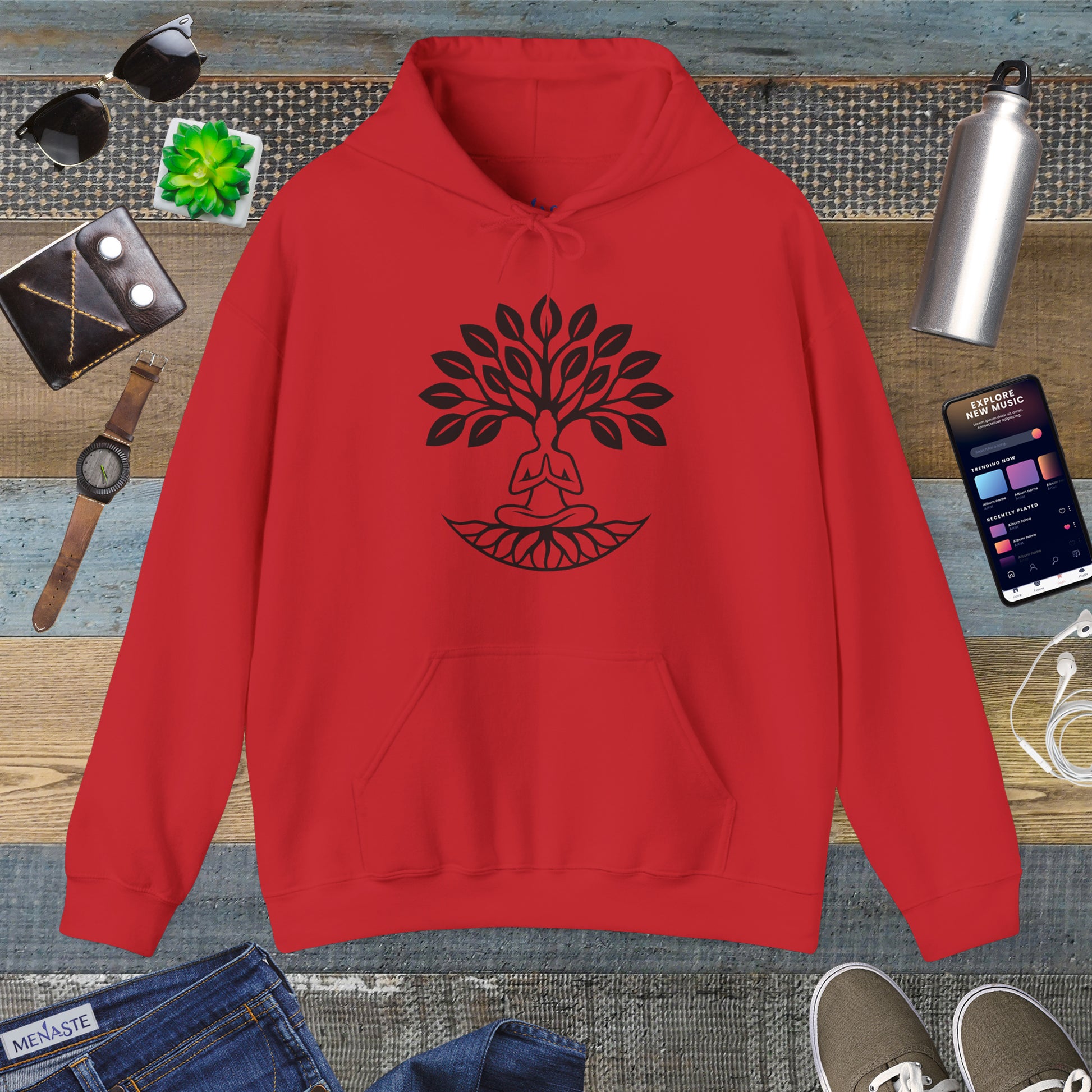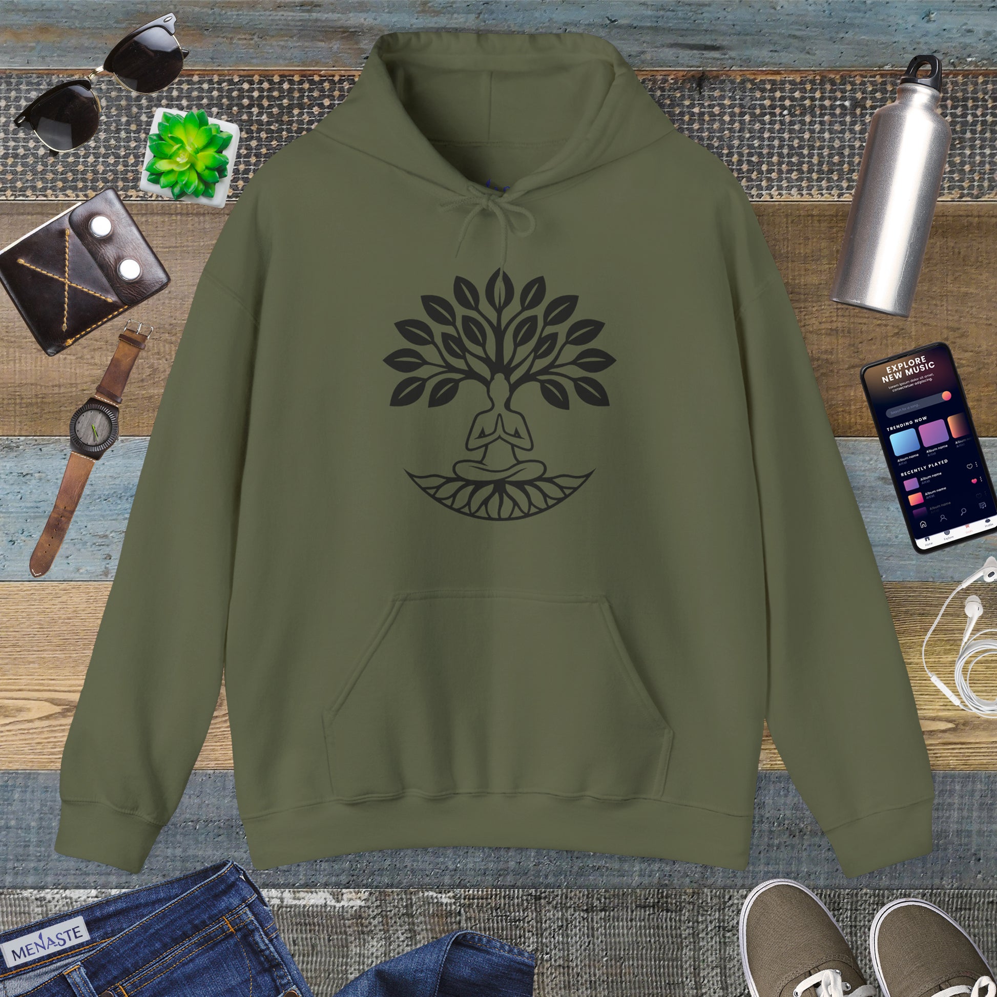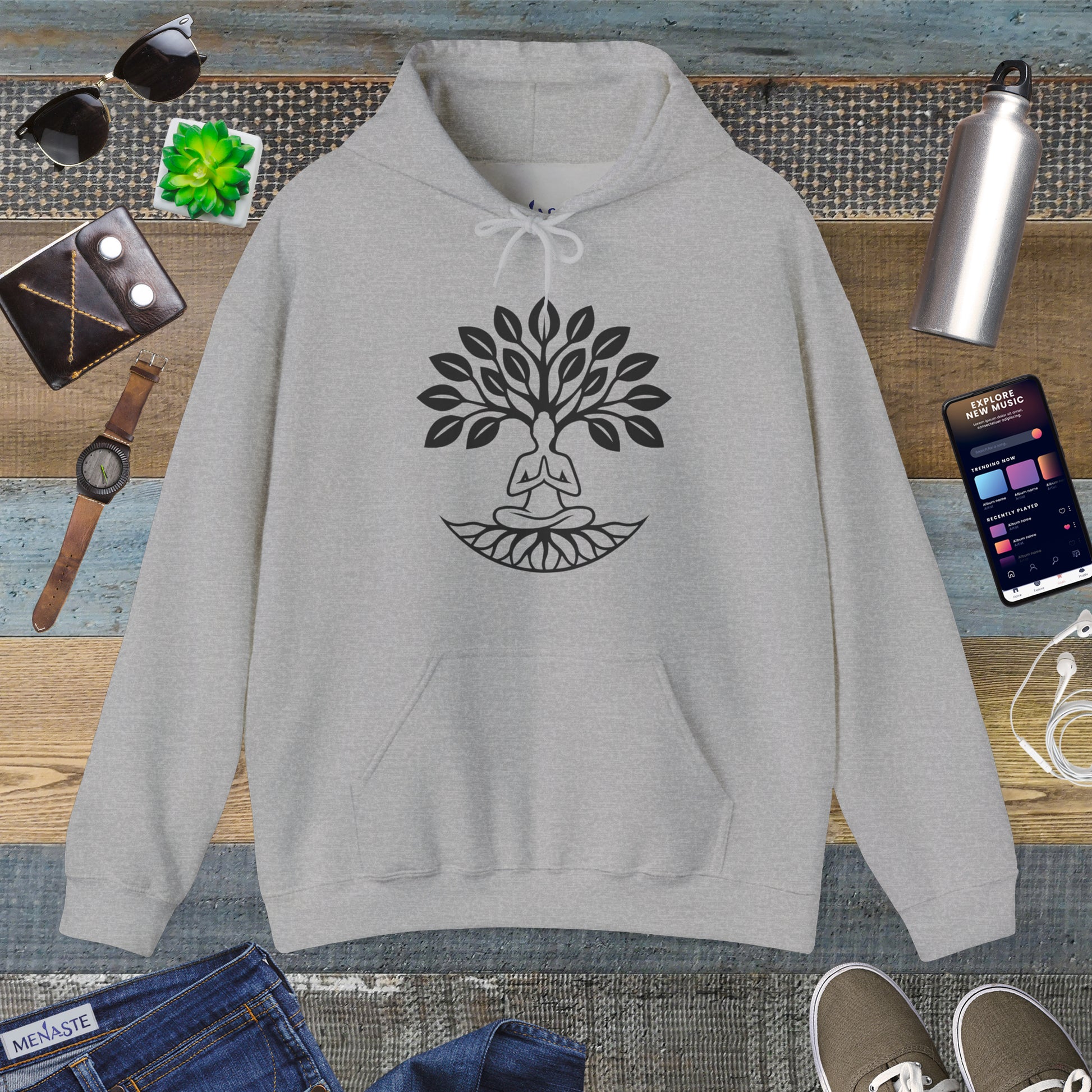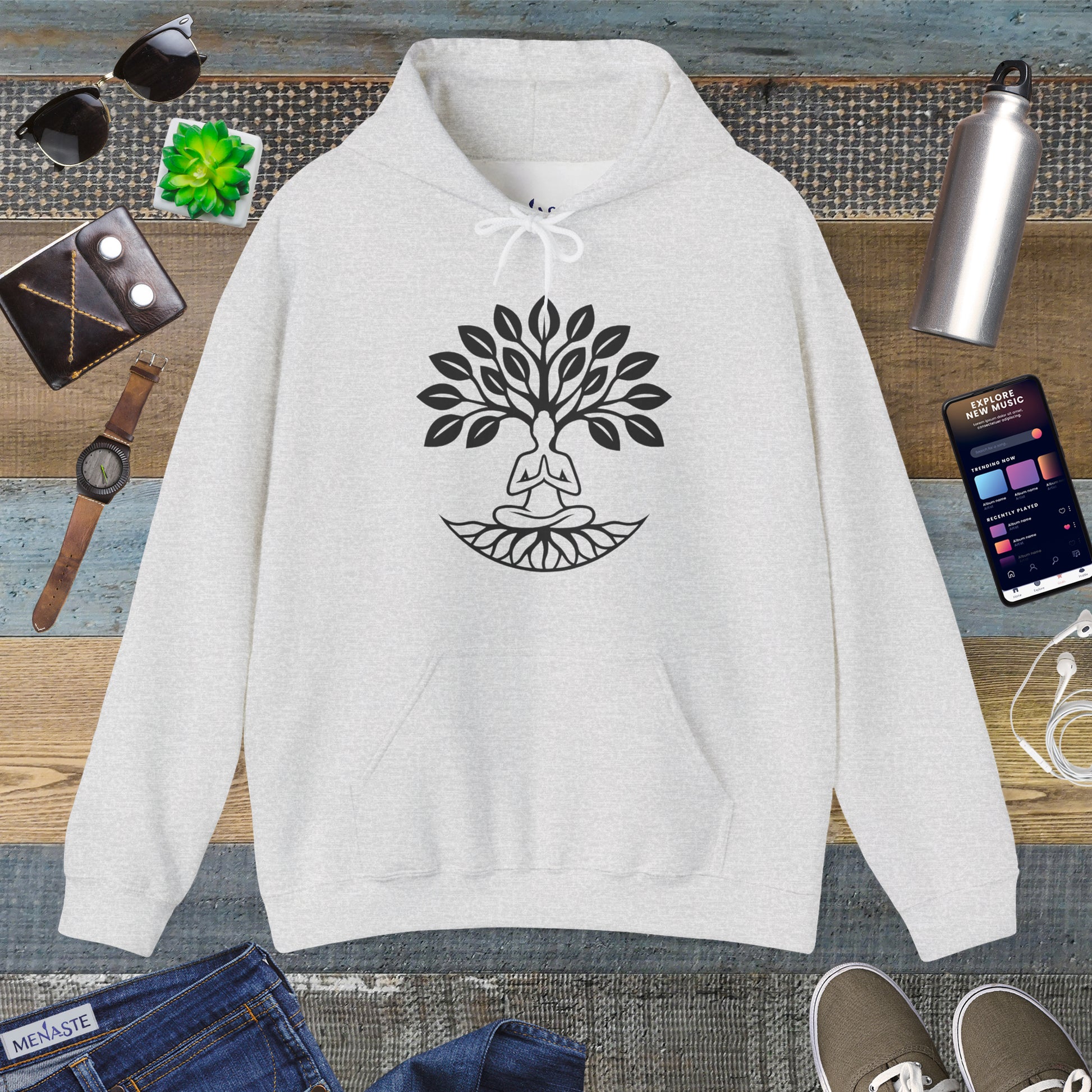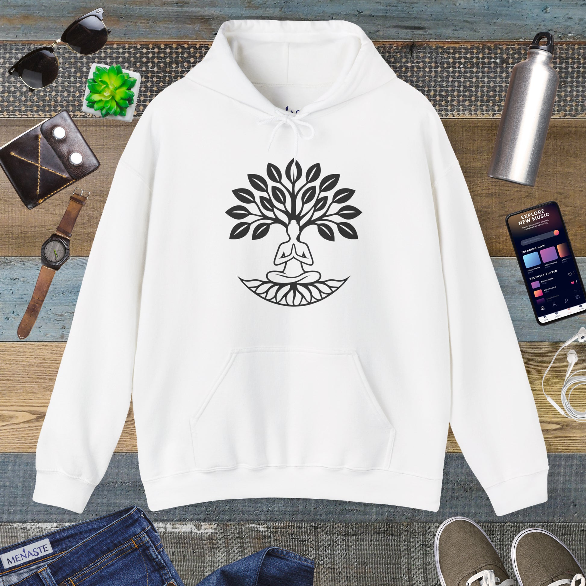 Ground your energy and stand firm in your truth with the Rooted Serenity Hoodie — where the strength of nature meets the calm of your inner world. A sacred tree flows into a meditating figure, its roots digging deep into the earth — a powerful reminder that true growth begins from within.
