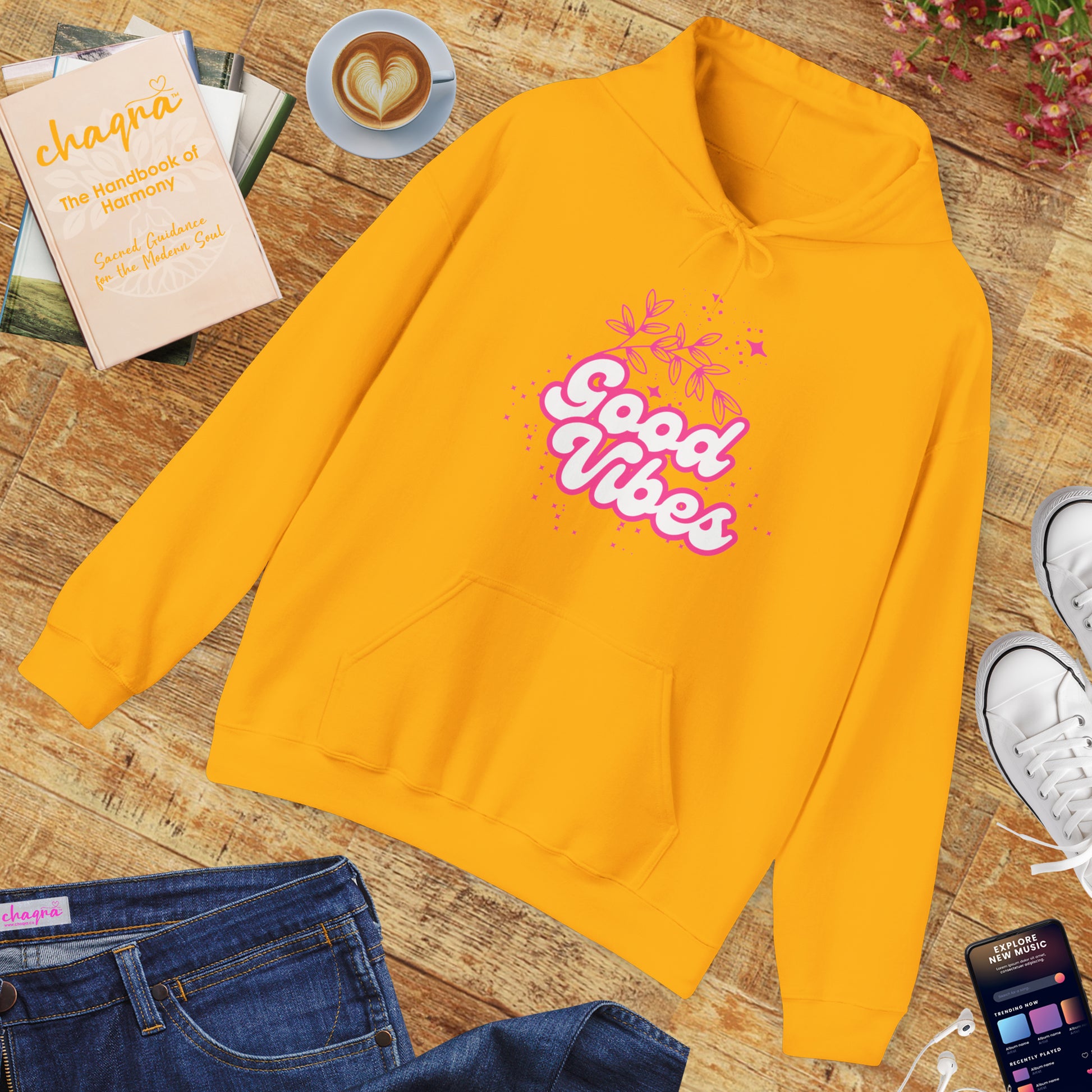 🌸Good Vibe Hoodie – Bloom in Positivity & Cosmic Light✨🌼