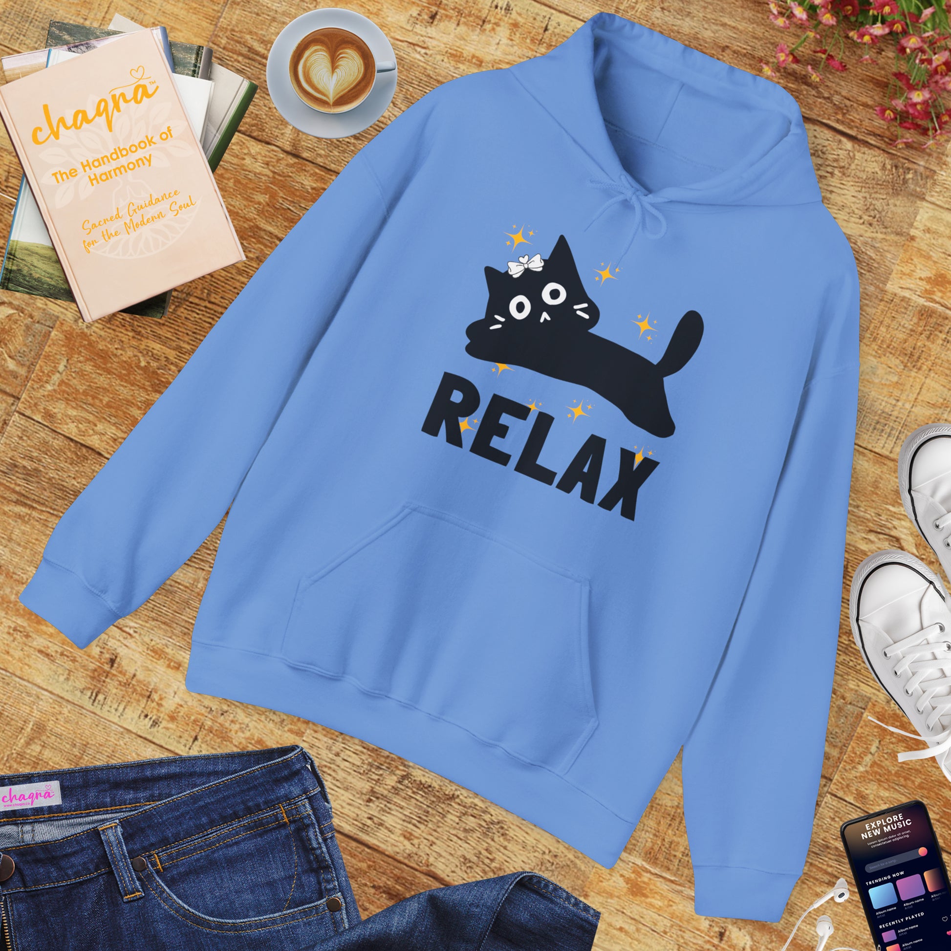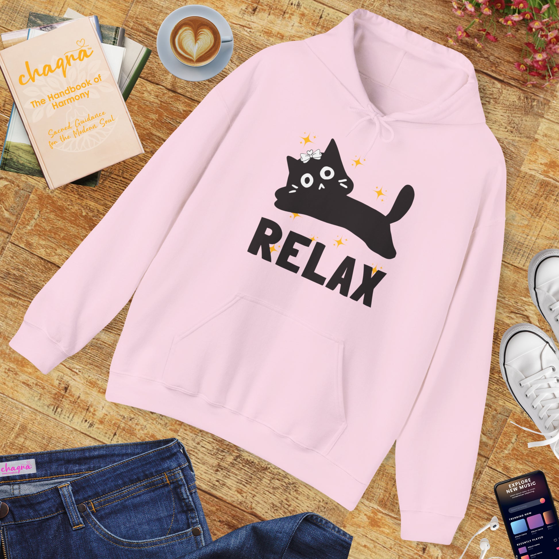 Step into stillness and surrender with the Relax Hoodie, a soft and soulful reminder to trust the flow of life — just like our feline guides. Featuring a serene little cat resting above the word “RELAX”, this design celebrates the art of presence, divine trust, and simply being.