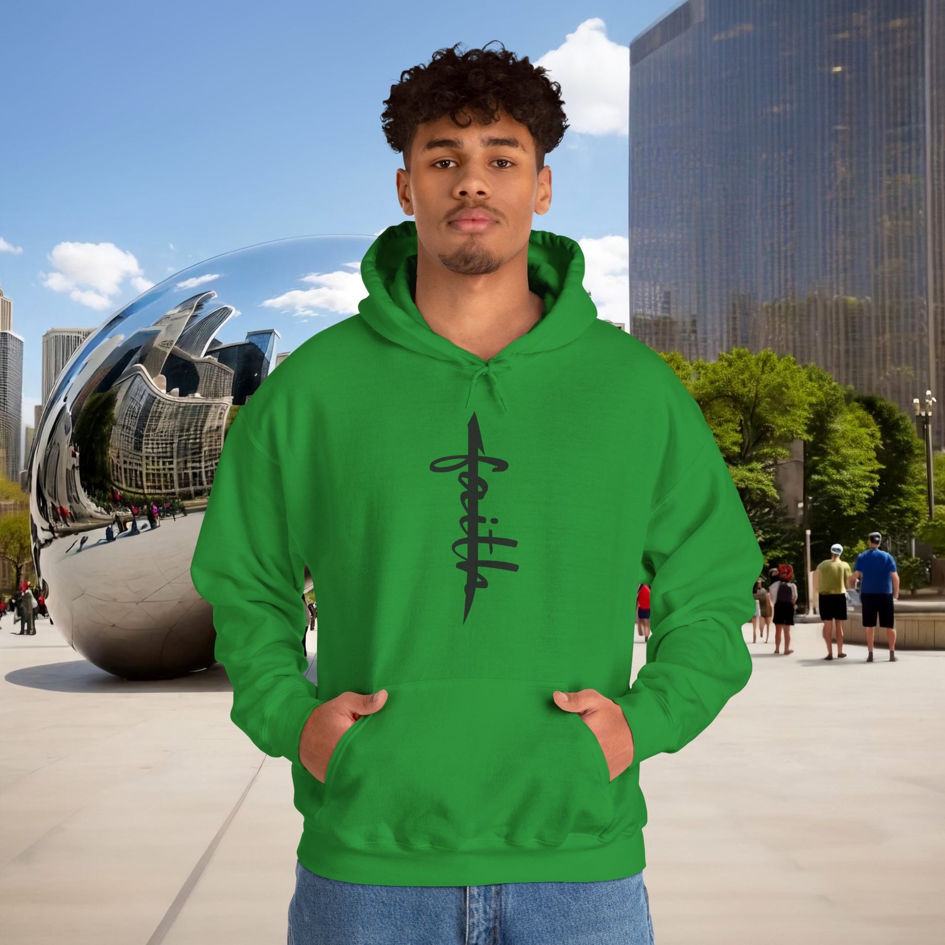 - Cursive FAITH layered over it — spirit meeting structure