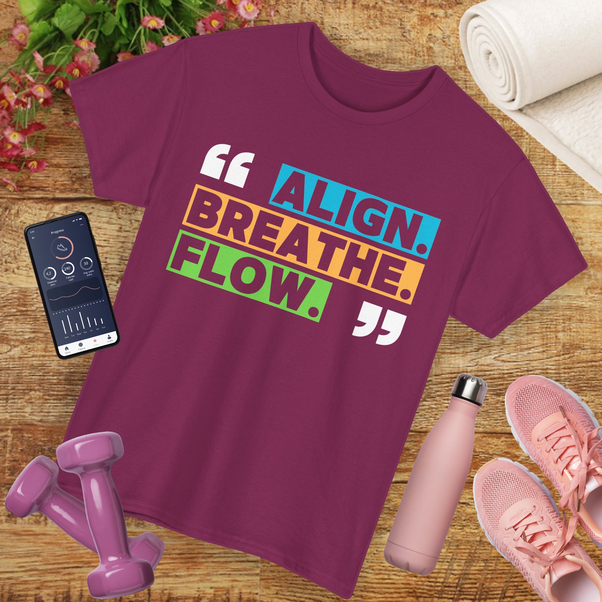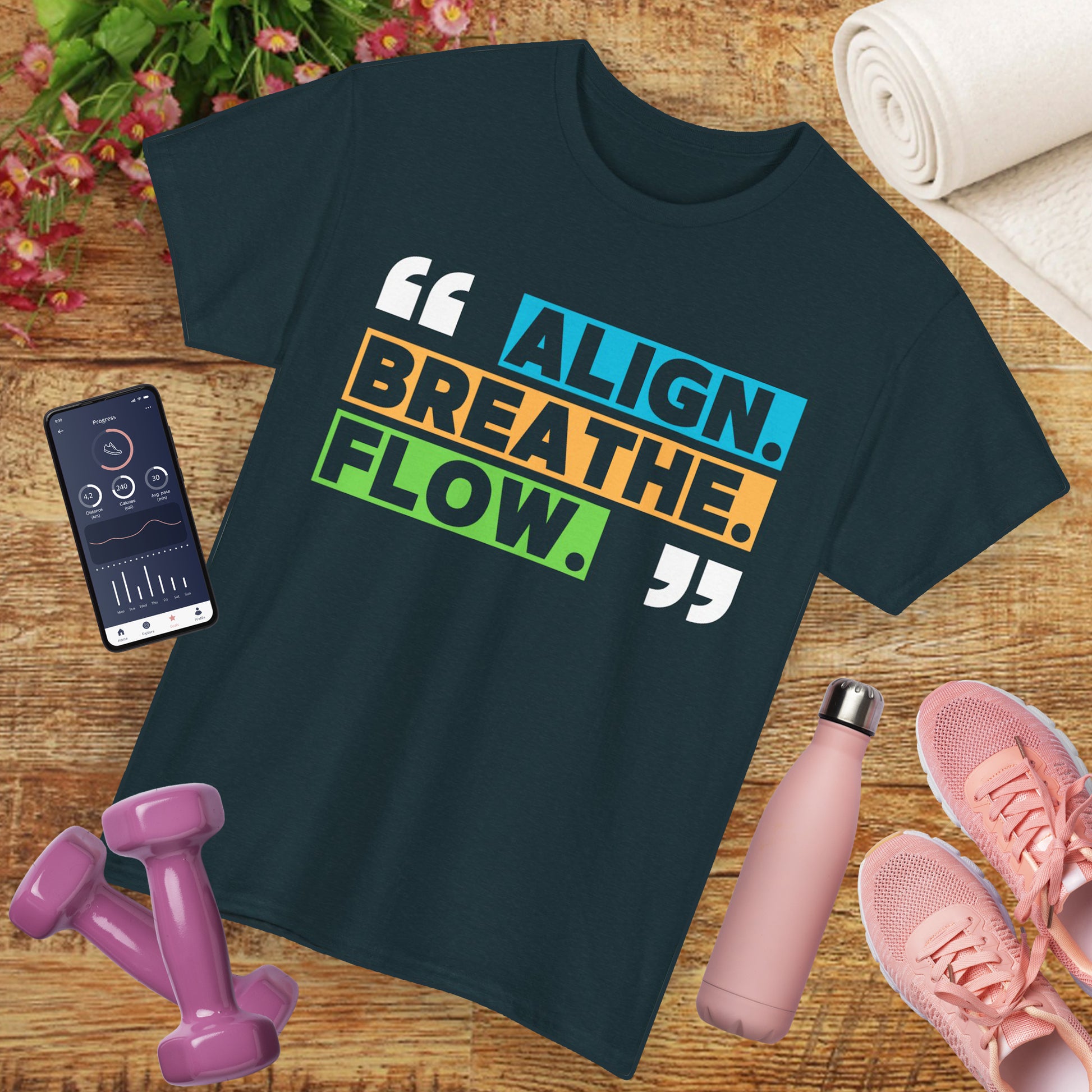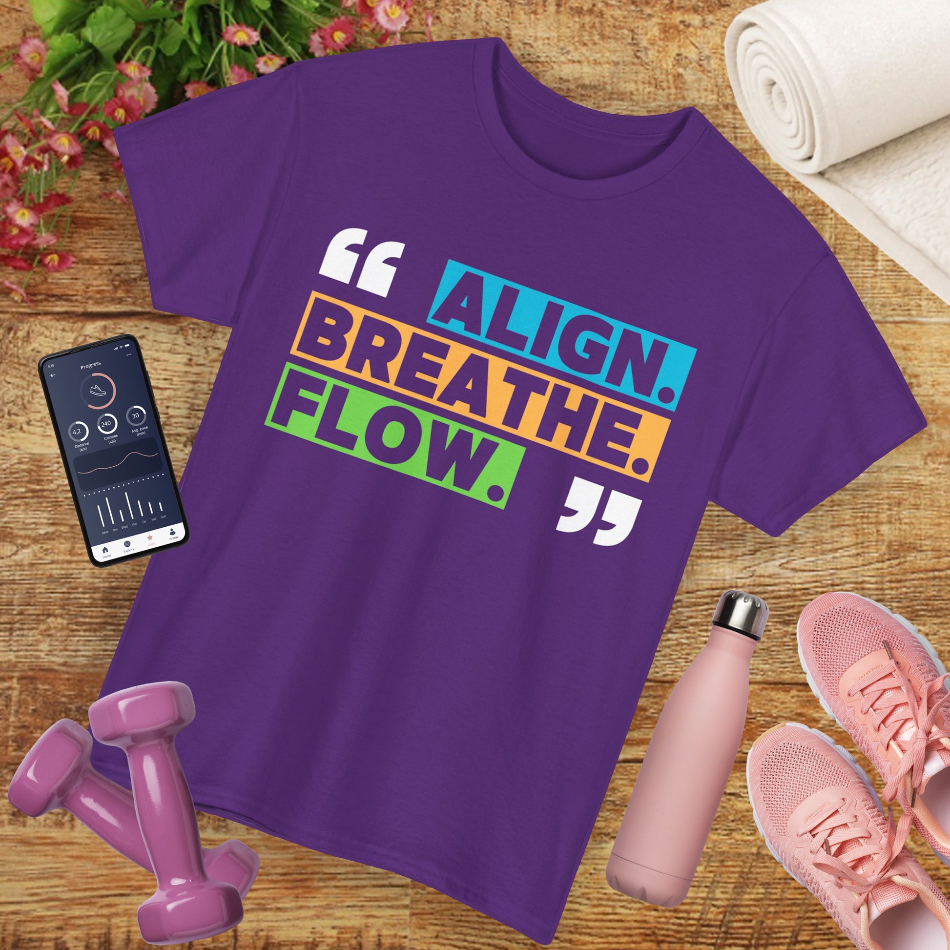Find your center in style with this soft, durable tee that’s as intentional as your breathwork. Featuring vibrant typography that reads "Align, Breathe, Flow", this design inspires mindfulness and movement wherever you go.🌀🧘