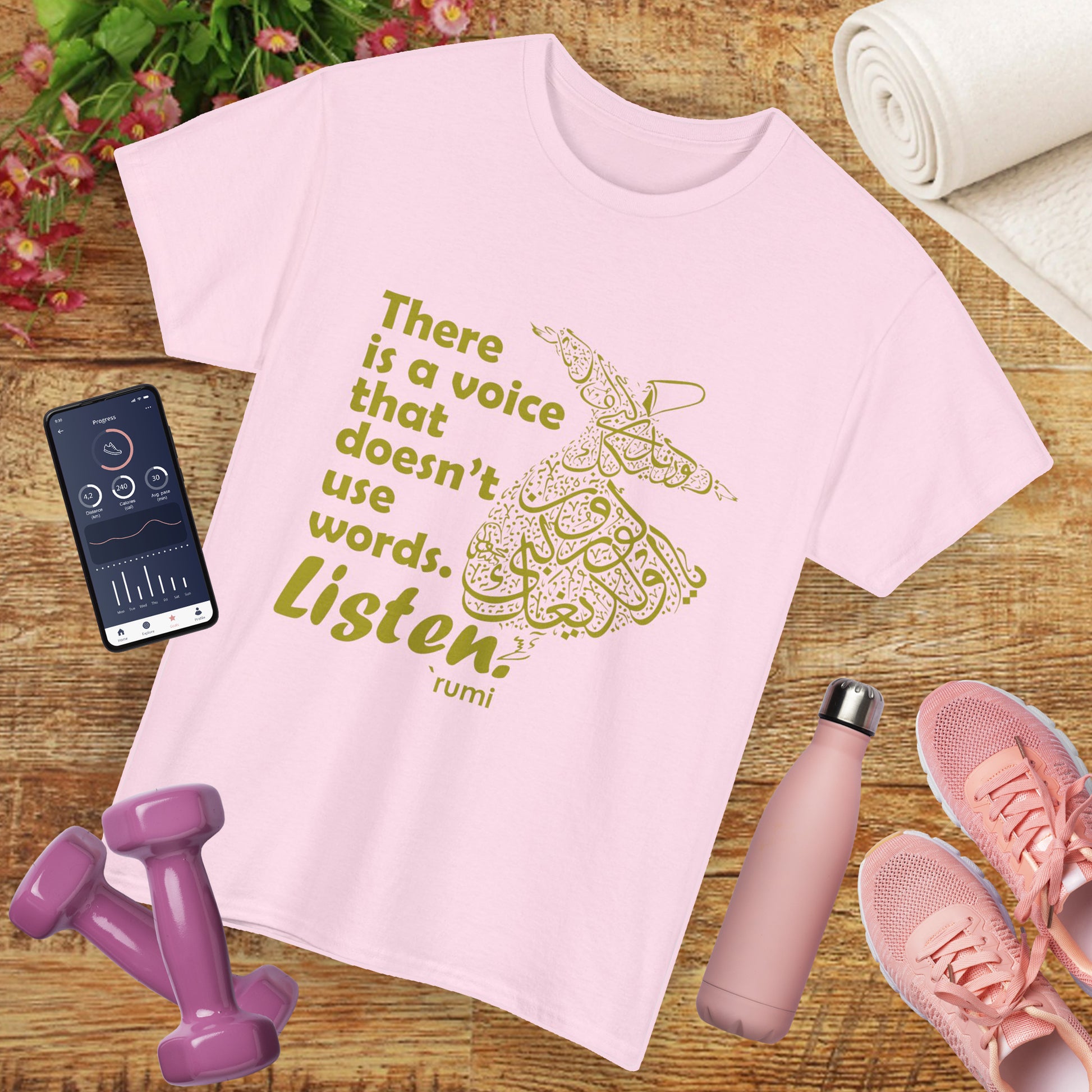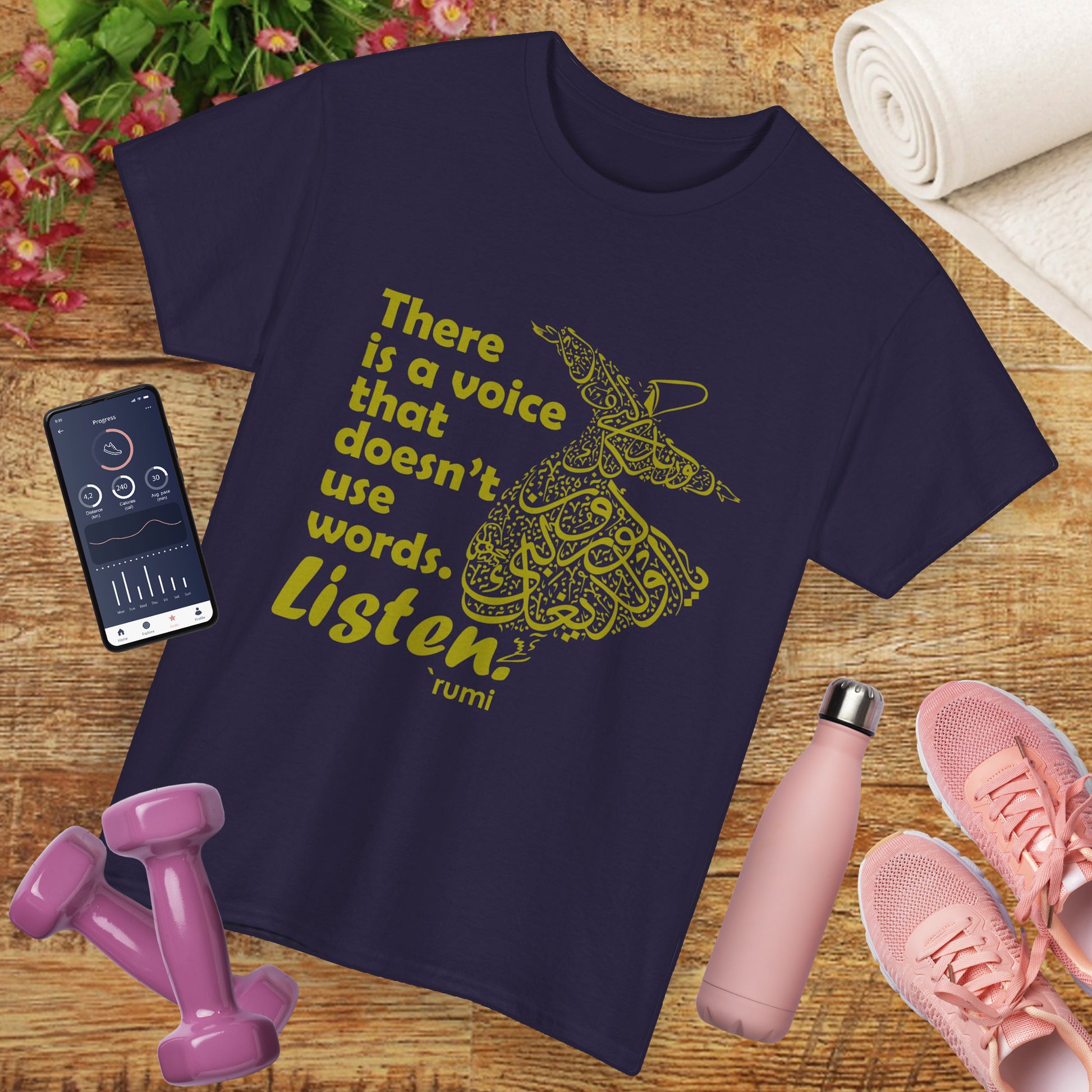 Listen Deeply - Rumi Quote - Whirling Dervish Heavy Cotton Tee