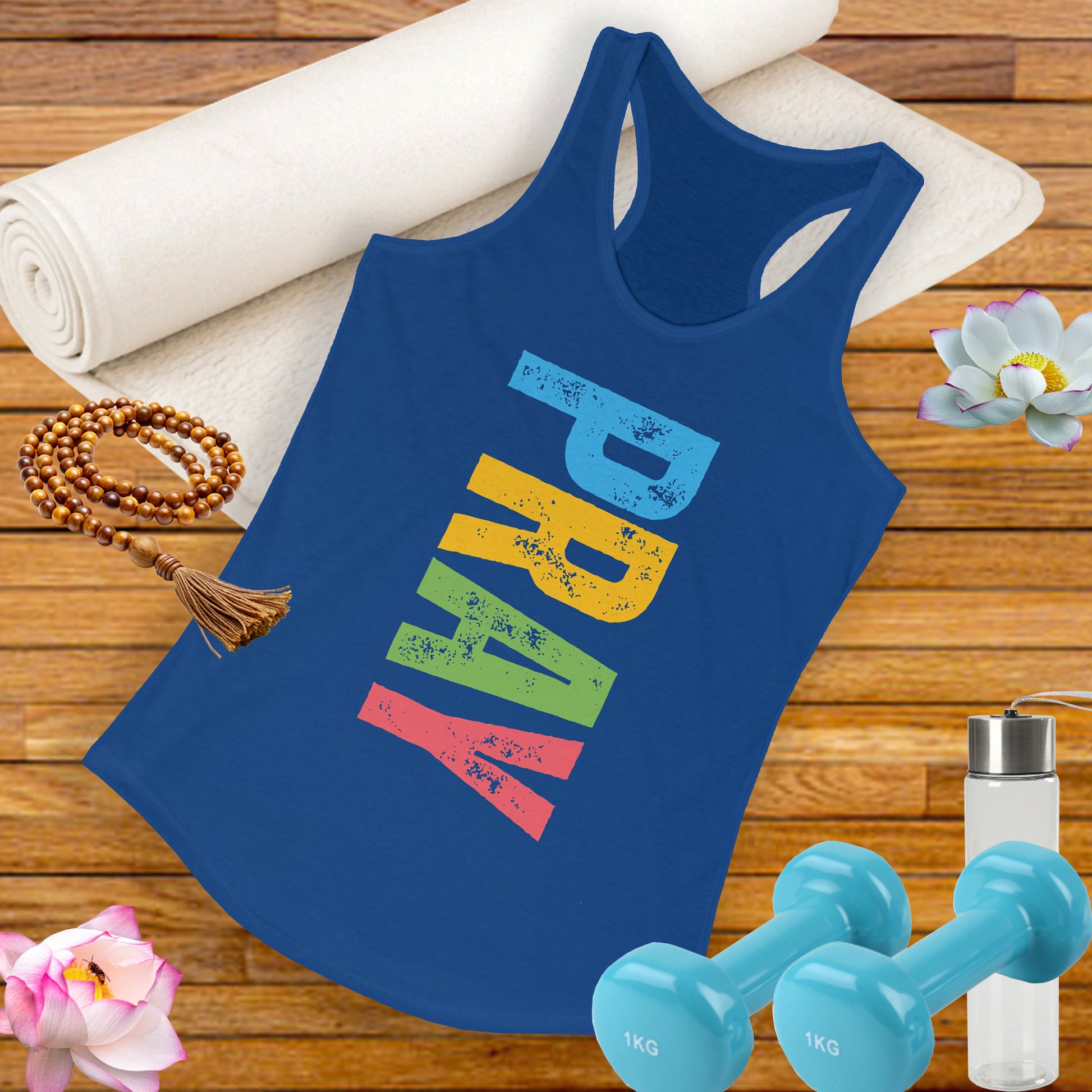 PRAY Bold Graphic Racerback Tank – Empowering, Faith-Inspired Women’s Activewear