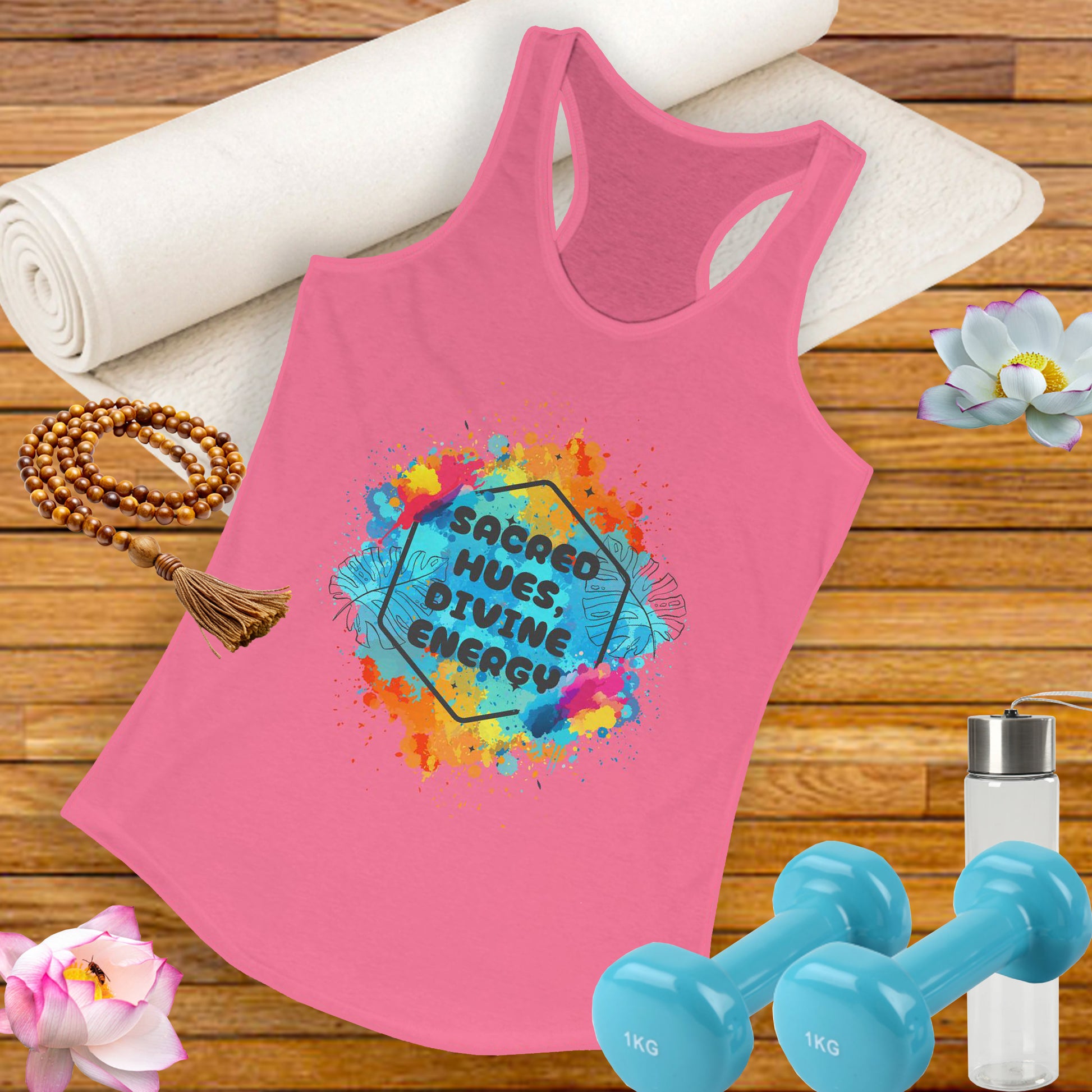 "Sacred Hues Divine Energy" Racerback Tank - Vibrant Artistic Design for Active Souls