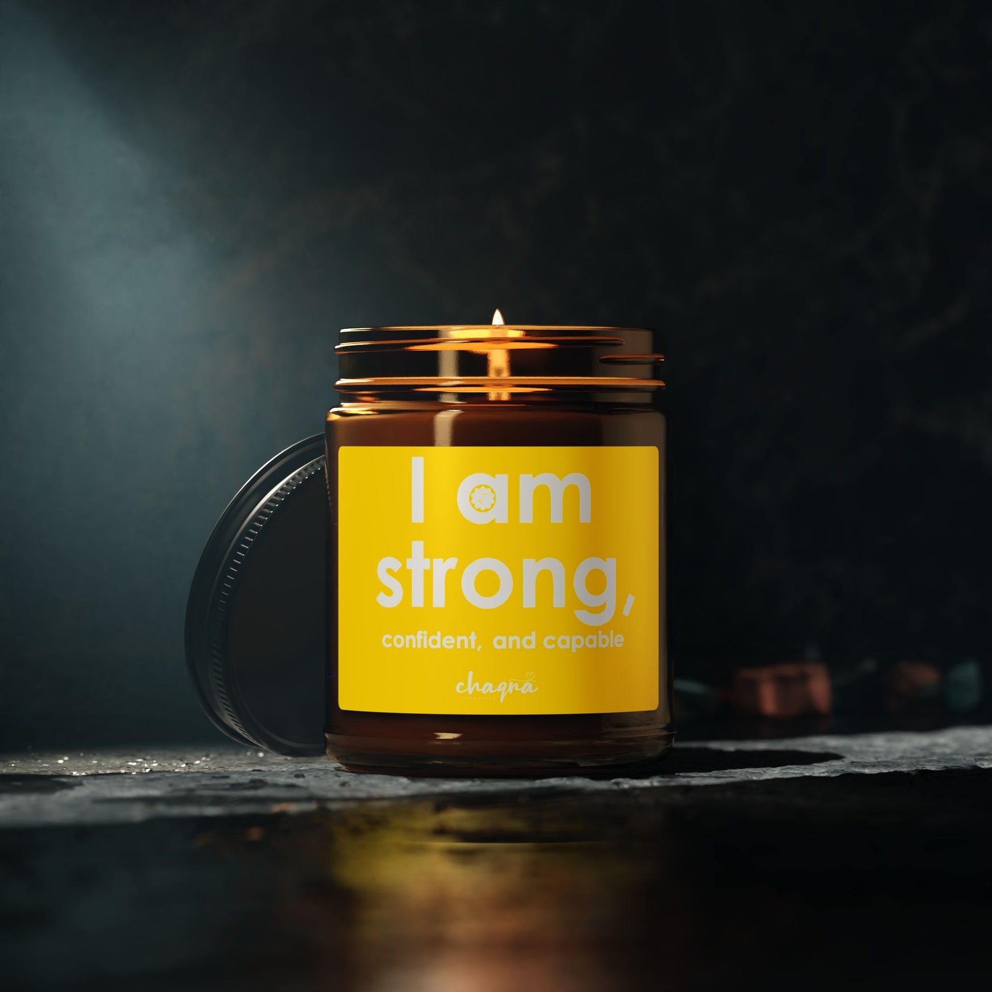 SOLAR PLEXUS CHAQRA Affirmation Candle 9oz. - "I am strong, confident, and capable"- Scented Soy Candle