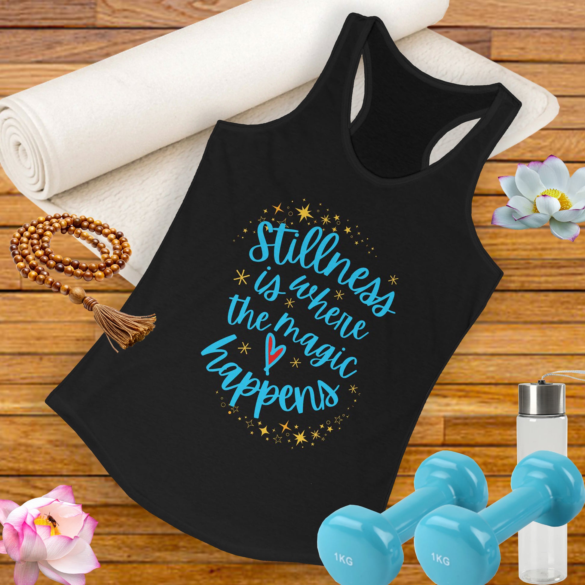 Stillness is Where the Magic Happens - Celestial Affirmation Racerback Tank