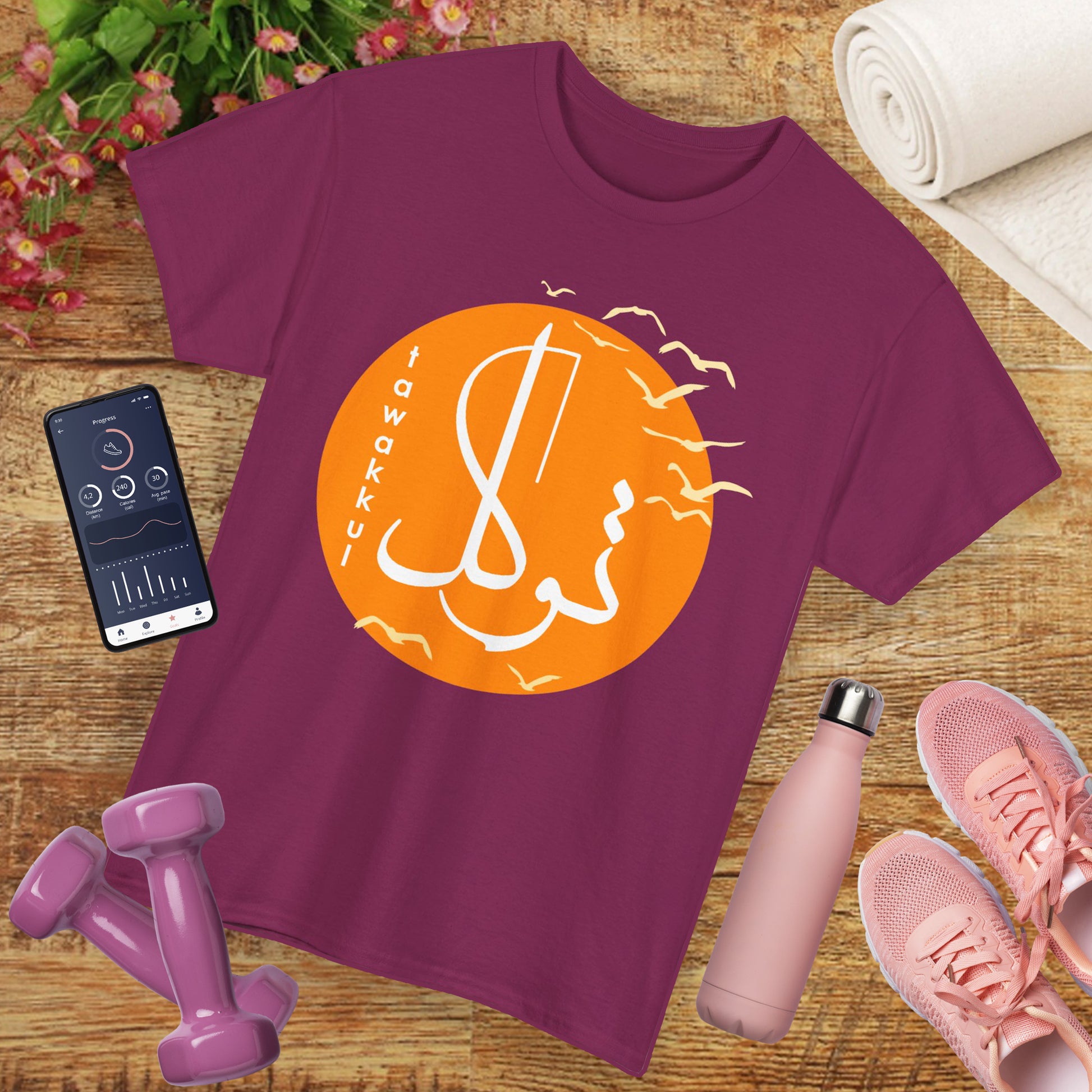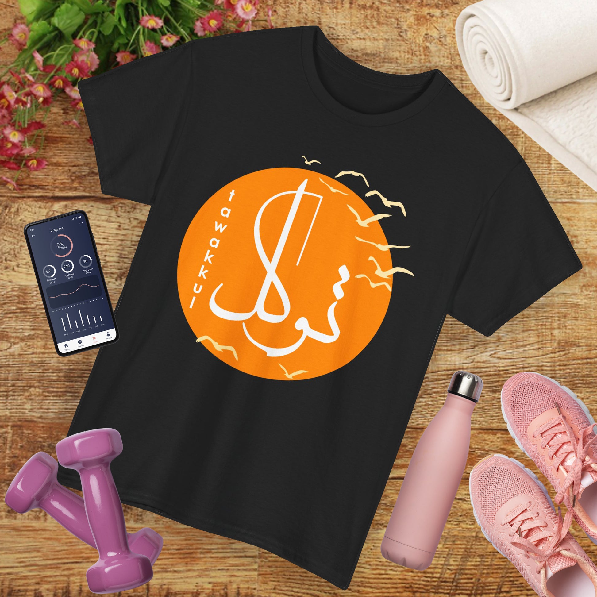 Let go and soar. This meaningful tee blends the elegance of Islamic calligraphy with the serene symbolism of flying birds—representing Tawakkul, or trust in divine timing and provision. It's more than a shirt—it’s a spiritual reminder to surrender with faith and fly with purpose.🕊️